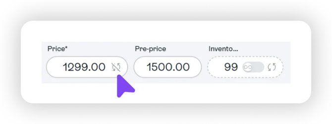 Open the product in your campaign in Sprii. Click on the two circled arrows next to the price to stop the sync between Sprii and your webshop. Enter the new price and keep the original price in Pre-price. This discount is now only available to those shopping from your Sprii campaign.
